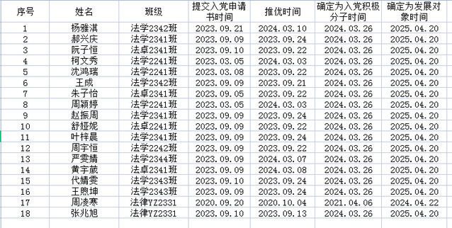 经各员工党支部培养和教育考察,杨雅淇等18名同志已具备中共预备党员条件,将于近期召开支部大会讨论并通过接收杨雅淇等18名同志为中共预备党员。根据发展党员工作的有关要求,现将杨雅淇等18名同志情况进行公示(具体情况见附件)。