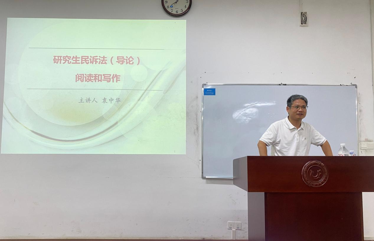 袁中华教授作为清华大学法学博士,兼任中国民事诉讼法学研究会常务理事,在《法学研究》等核心期刊发表多篇论文,主持多项国家级课题,学术积淀深厚。讲座中,他从阅读方法、选题标准、文献综述、逻辑架构、写作规范等维度,结合案例与自身研究经历展开指导。讲座中,袁教授详解“建框架、做摘抄、巧联想、深批判”的读书笔记法,并提出“选题小而精”“论证逻辑清晰”等22条论文写作规范。同时,袁教授还指出,当下不少论文沿用概述出发的的传统框架,逻辑冗余拖沓,应直接采用“提出问题——分析问题——解决问题”的简洁架构,让论证更聚焦、更具针对性。