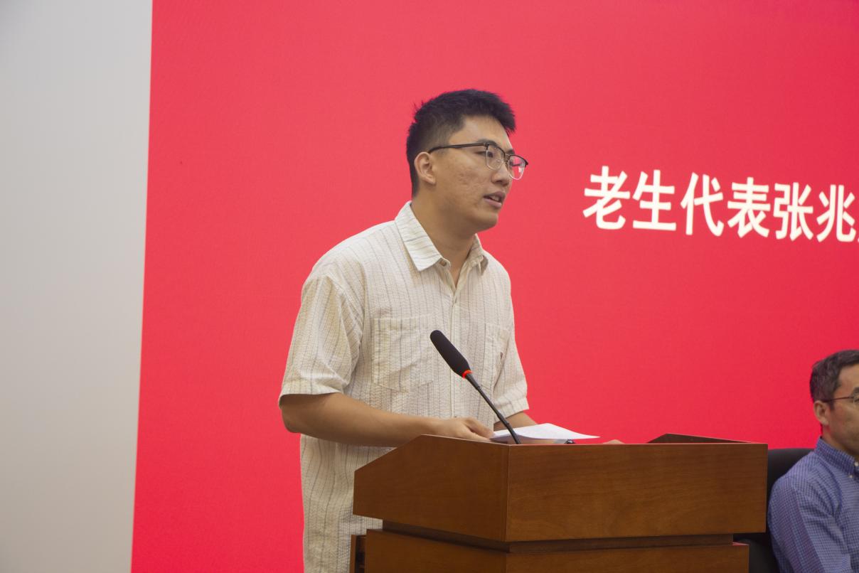 老生代表张兆旭以“过来人”的身份,表示研究生阶段是一段饱满而丰盈的旅程,不仅要真诚感受课堂时光与江城四季,也要在文献中深耕、在思维上精进。
