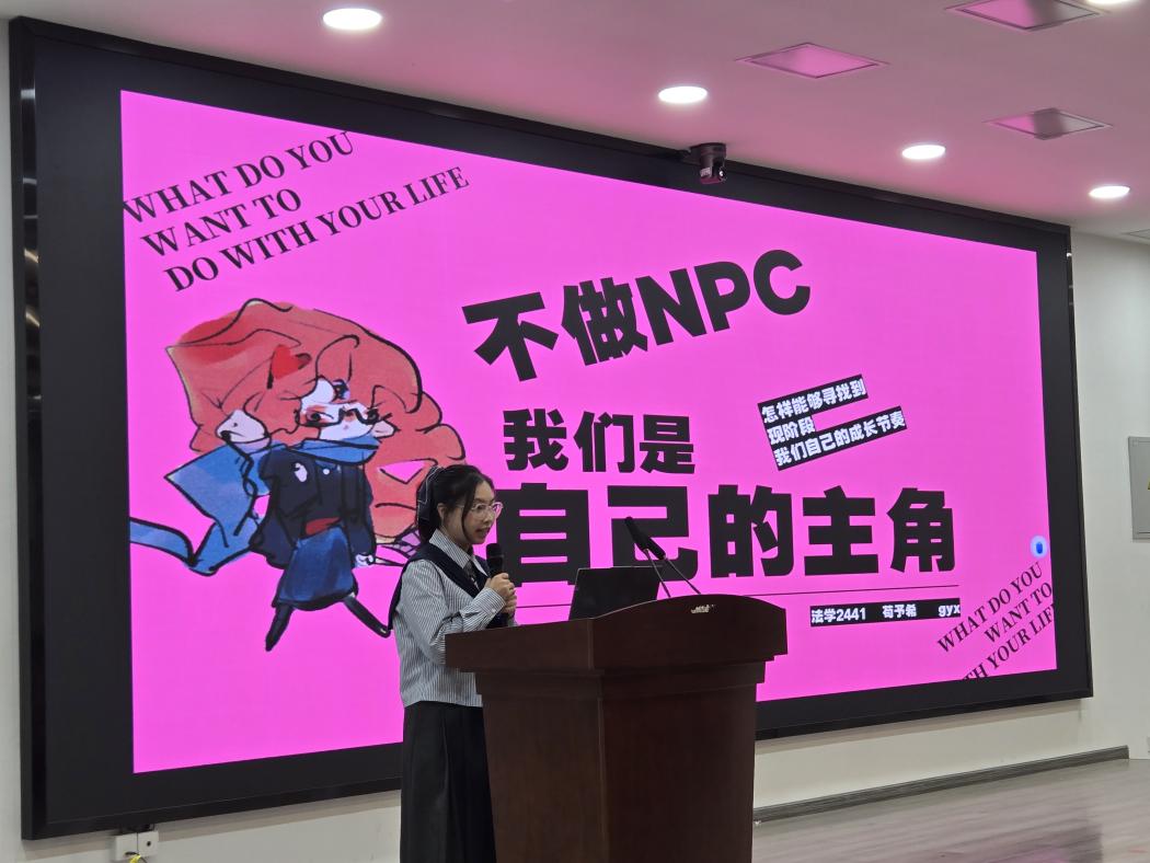 在分享环节,韩林润围绕“学业精进”与“综测领跑”,提出“预习—课堂—复盘—拓展”四位一体学习法,强调构建知识体系与全面发展;苟予希则以“不做NPC,做自己人生的主角”为题,分享“四步计划法”与思维导图工具,鼓励同学们主动规划、积极行动。