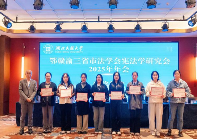 本网讯 (通讯员 林亚楠 王秀才)2025年11月15日,鄂赣渝三省市法学会宪法学研究会2025年年会在湖北恩施举行。本次年会由湖北省、江西省、重庆市三地法学会宪法学研究会共同主办,湖北民族大学与恩施州人大常委会联合承办。湖北省法学会党组成员、秘书长赵俊出席会议并讲话。来自湖北省、江西省、重庆市的近百余名宪法学专家、学者、青年员工代表参加本次年会。